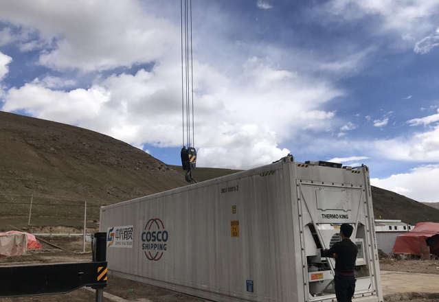西藏移動(dòng)冷庫(kù)項(xiàng)目,是西藏中遠(yuǎn)海運(yùn)物流繼發(fā)運(yùn)“西藏號(hào)”班列、推廣“西藏好水”等項(xiàng)目后,進(jìn)一步積極貫徹國(guó)家“央企助力、富民興藏”精神,推進(jìn)中遠(yuǎn)集團(tuán)、西藏中興商貿(mào)集團(tuán)、西藏中遠(yuǎn)海運(yùn)物流“產(chǎn)業(yè)援藏”戰(zhàn)略布局的創(chuàng)新舉措。在雙方公司領(lǐng)導(dǎo)的重點(diǎn)關(guān)注和大力支持下,西藏中遠(yuǎn)海運(yùn)物流充分發(fā)揮戰(zhàn)略引領(lǐng)職能,同香港中遠(yuǎn)海運(yùn)物流共同組成項(xiàng)目組,完成赴藏實(shí)地調(diào)研、選址分析、設(shè)備組裝方案設(shè)計(jì)等工作,并由上海中遠(yuǎn)海運(yùn)物流安排運(yùn)輸,保障項(xiàng)目順利進(jìn)展。