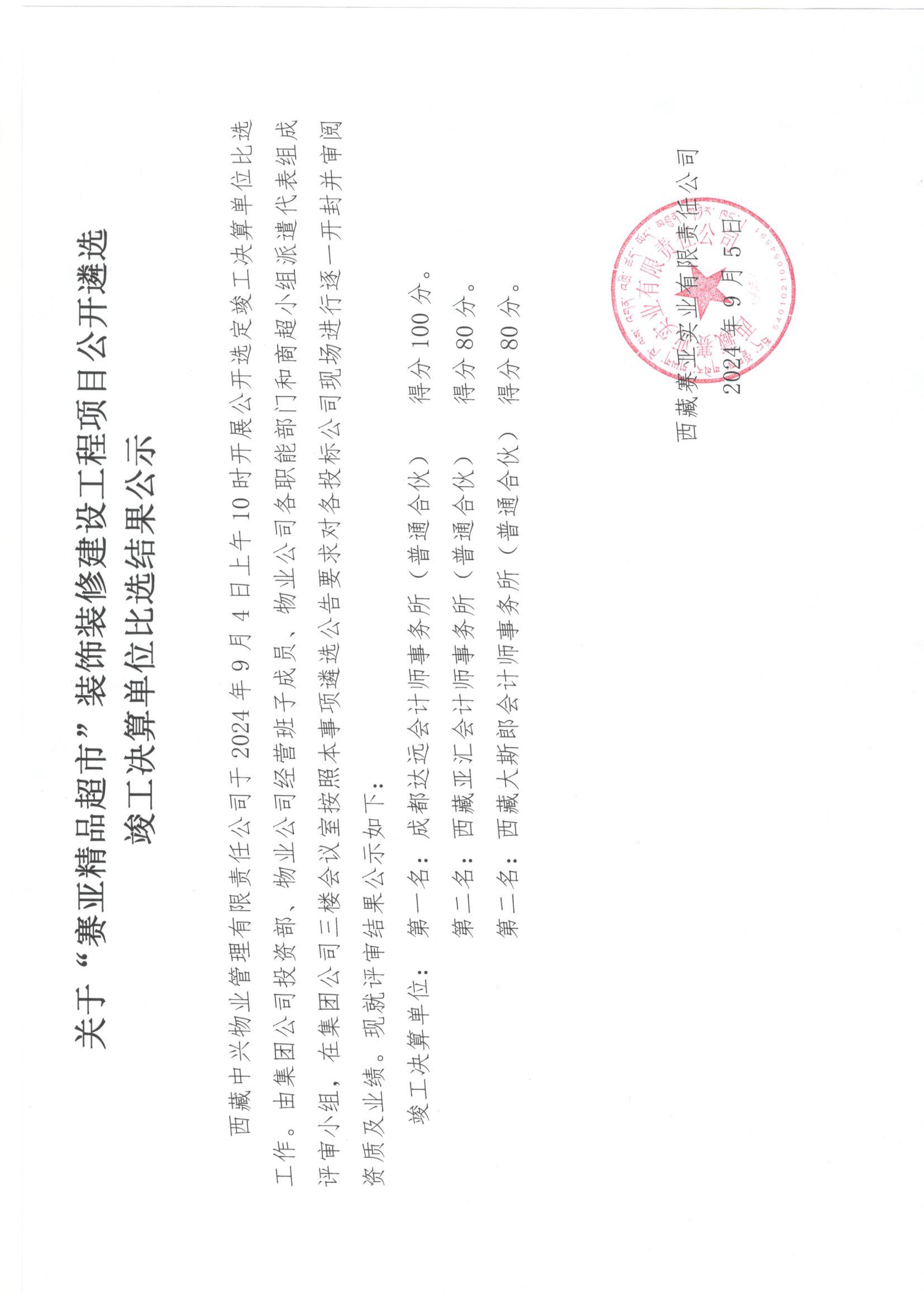 關(guān)于“賽亞精品超市”裝飾裝修建設(shè)工程項(xiàng)目公開遴選竣工決算單位比選結(jié)果公示