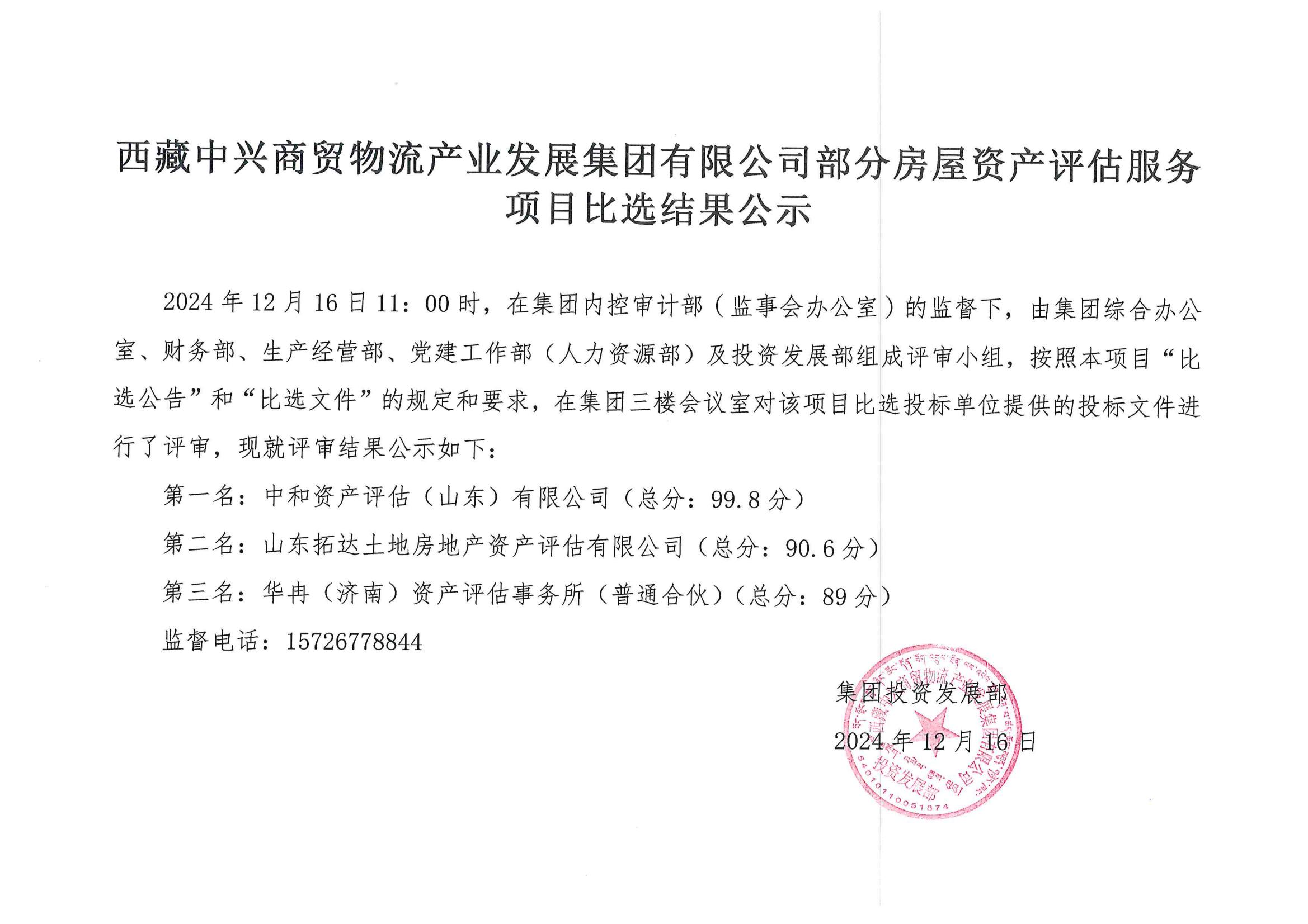 西藏中興商貿(mào)物流產(chǎn)業(yè)發(fā)展集團(tuán)有限公司部分房屋資產(chǎn)評估服務(wù)項(xiàng)目比選結(jié)果公示