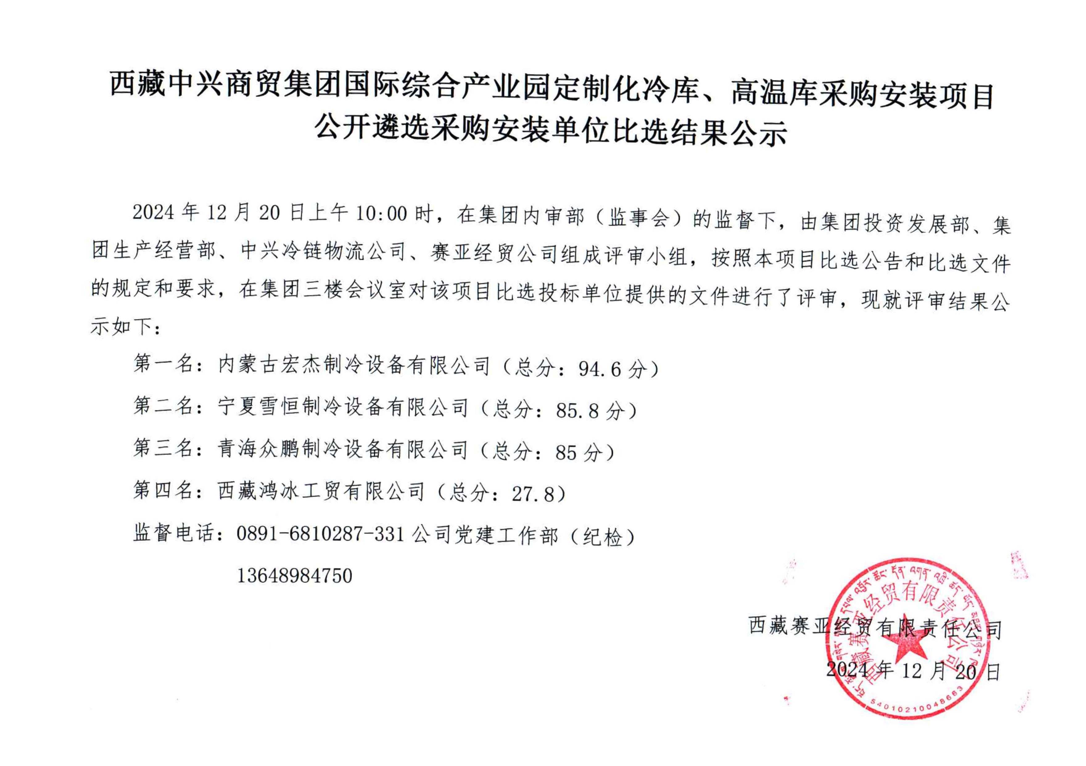 西藏中興商貿(mào)集團(tuán)國際綜合產(chǎn)業(yè)園定制化冷庫、高溫庫采購安裝項(xiàng)目公開遴選采購安裝單位比選結(jié)果公示