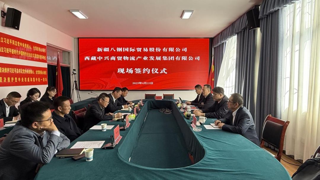 ???????????????????????????????????????????????????????????????????????????2025年4月22日,西藏中興商貿(mào)物流產(chǎn)業(yè)發(fā)展集團(tuán)有限公司與新疆八鋼國(guó)際貿(mào)易股份有限公司隆重舉行《合作意向書(shū)》簽約儀式,新疆八鋼國(guó)際貿(mào)易股份有限公司董事長(zhǎng)王豫東一行親臨現(xiàn)場(chǎng),共啟合作新篇章。集團(tuán)黨委書(shū)記、董事長(zhǎng)李忠,黨委專(zhuān)職副書(shū)記、董事、工會(huì)主席索朗次仁,黨委委員、副總經(jīng)理張佰棟出席本次簽約儀式。