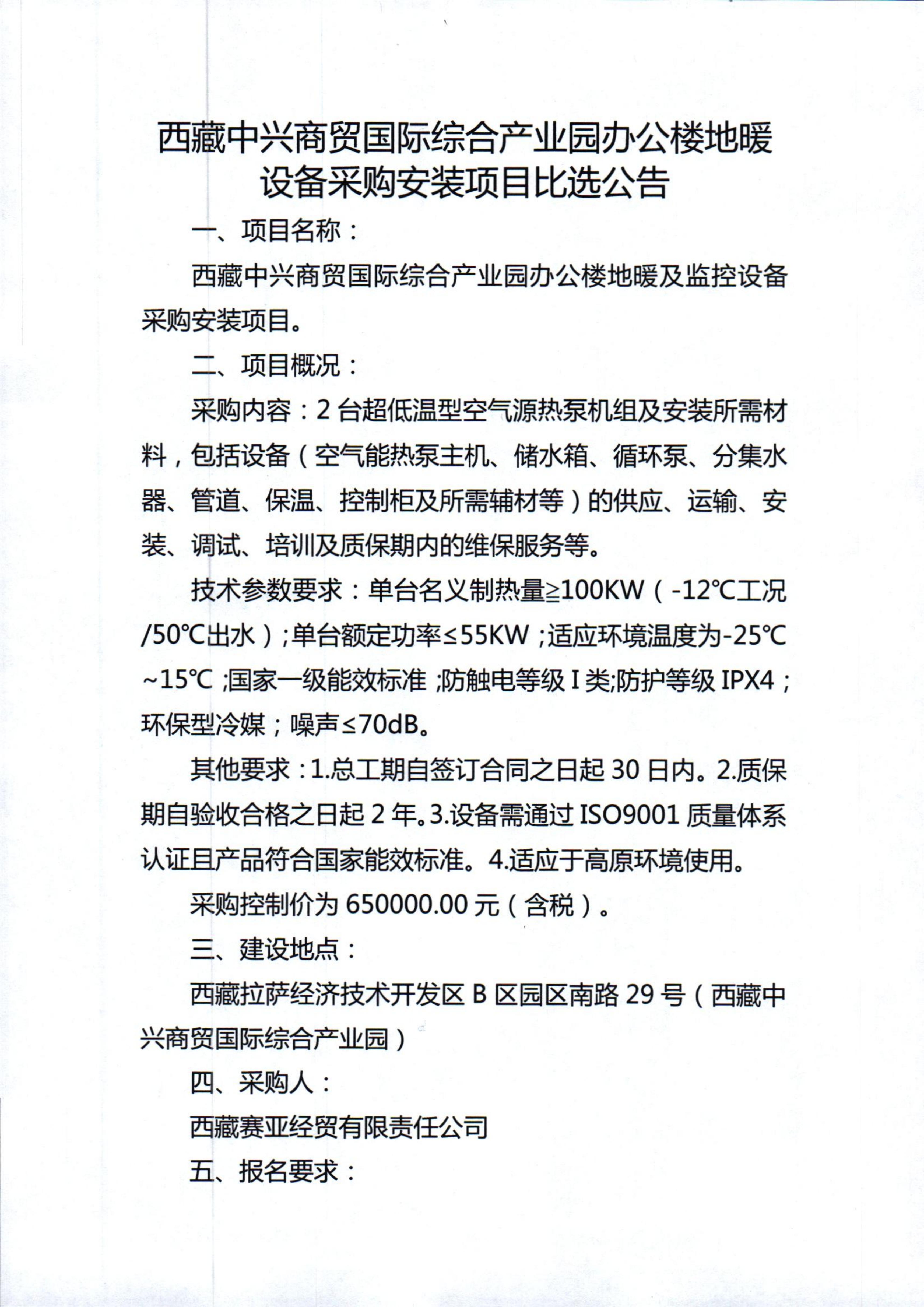 西藏中興商貿(mào)國際綜合產(chǎn)業(yè)園辦公樓地暖設(shè)備采購安裝項目比選公告
